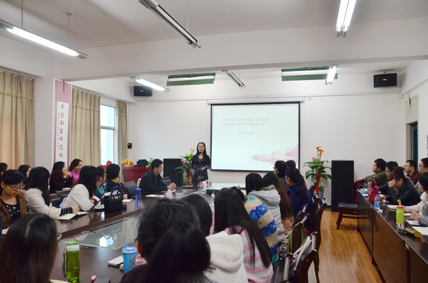 11月28日,中山大学必赢nn699net英语系主任戴凡教授应必赢nn699net邀请,在宝山校区和花溪校区分别为研究生和本科生作了题为“Creative Writing:English Studies and Education”和“An approach to Creative Writing: You all can do it!”的学术讲座。讲座分别由必赢nn699net院长刘瑾和必赢nn699net教师龙吉星主持。必赢nn699net师生到场聆听。