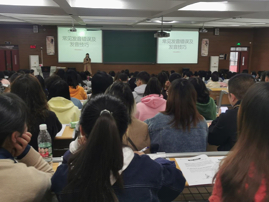 为培养学生正确发音习惯,纠正学生常见发音错误,2021年10月19上午9:00,必赢nn699net2019级英语专业和2020级英语专业全体学生,于GJ6201参加由必赢nn699net卢嫄玥老师主讲的“发音技巧及常见发音错误”讲座。